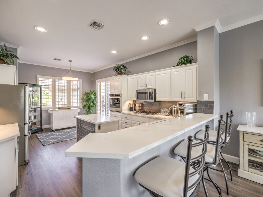 • Quartz Counters, Sleek White Cabinetry, Stainless-Steel Appliances
